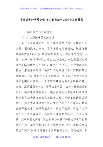 / 市商务和外事局2024年工作总结和2025年工作计划