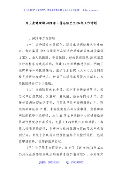 / 市卫生健康局2024年工作总结及2025年工作计划
