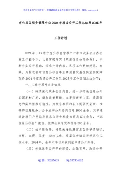 / 市住房公积金管理中心2024年政务公开工作总结及2025年工作计划