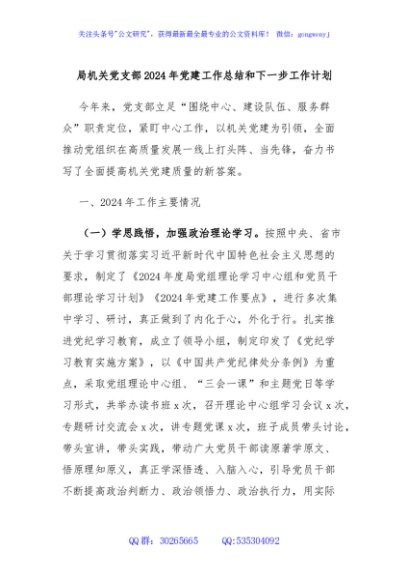 / 局机关党支部2024年党建工作总结和下一步工作计划