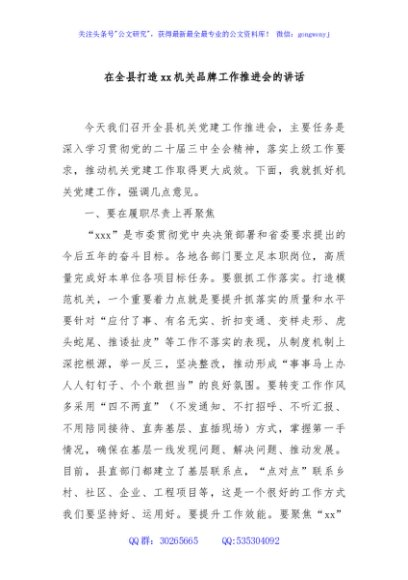 / 在全县打造xx机关品牌工作推进会的讲话