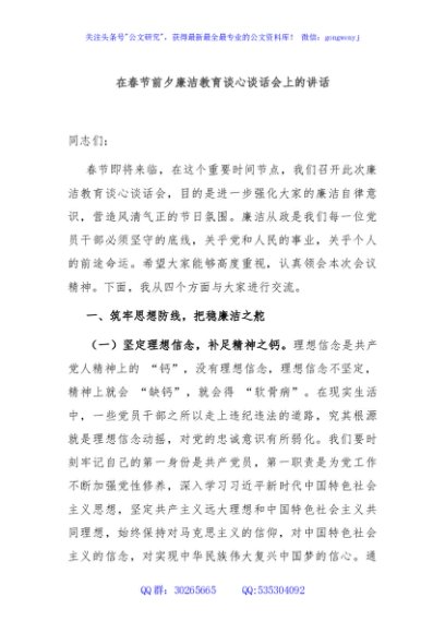 / 在春节前夕廉洁教育谈心谈话会上的讲话
