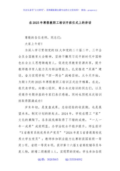 / 在2025年寒假教职工培训开班仪式上的讲话