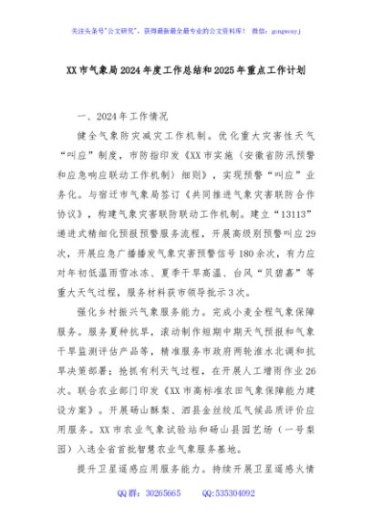 / XX市气象局2024年度工作总结和2025年重点工作计划