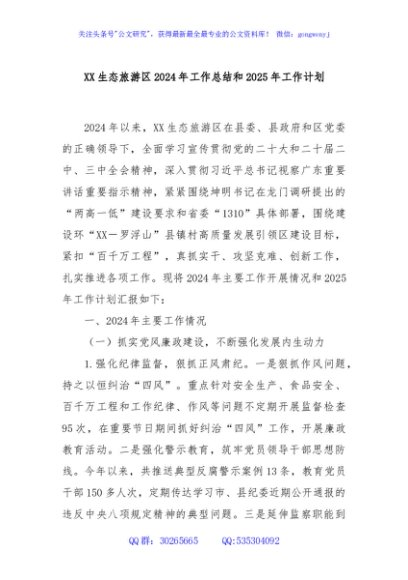 / XX生态旅游区2024年工作总结和2025年工作计划