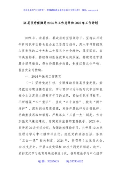 / XX县医疗保障局2024年工作总结和2025年工作计划