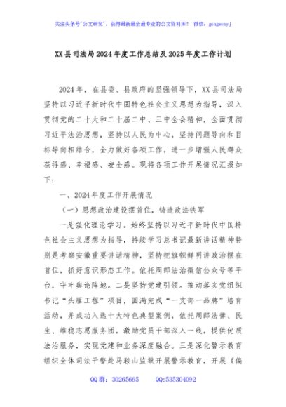 / XX县司法局2024年度工作总结及2025年度工作计划
