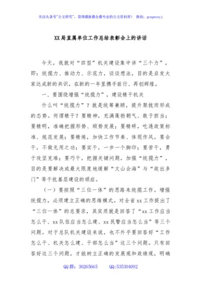 / XX局直属单位工作总结表彰会上的讲话