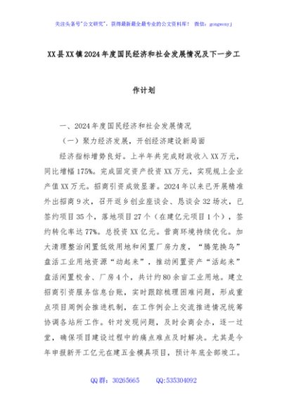 / XX县XX镇2024年度国民经济和社会发展情况及下一步工作计划