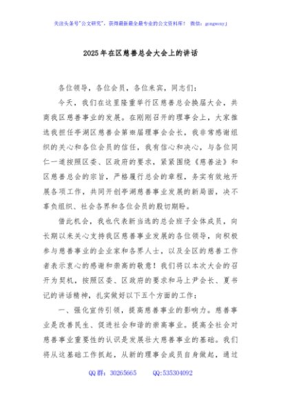 / 2025年在区慈善总会大会上的讲话