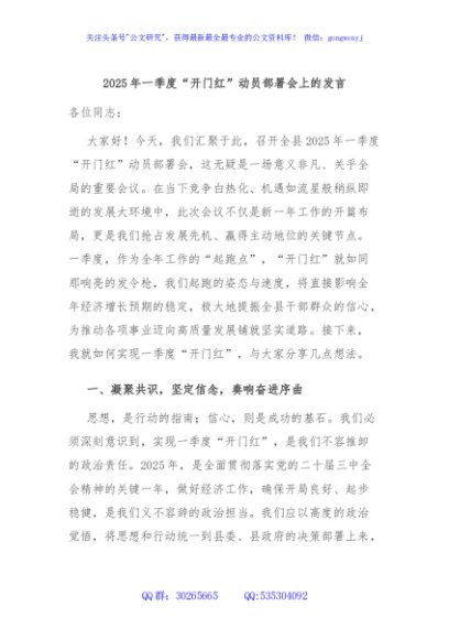 / 2025年一季度“开门红”动员部署会上的发言