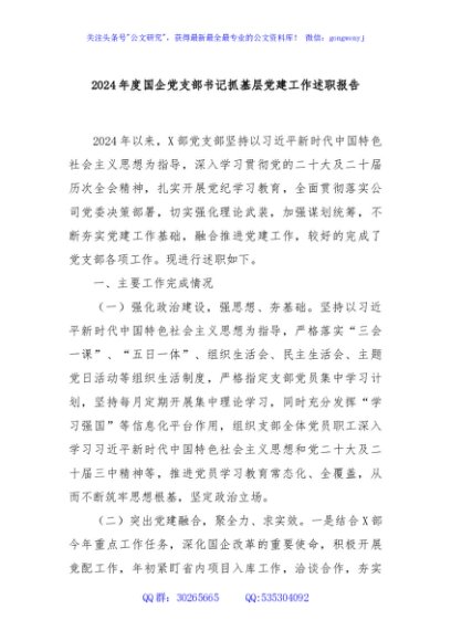 / 2024年度国企党支部书记抓基层党建工作述职报告
