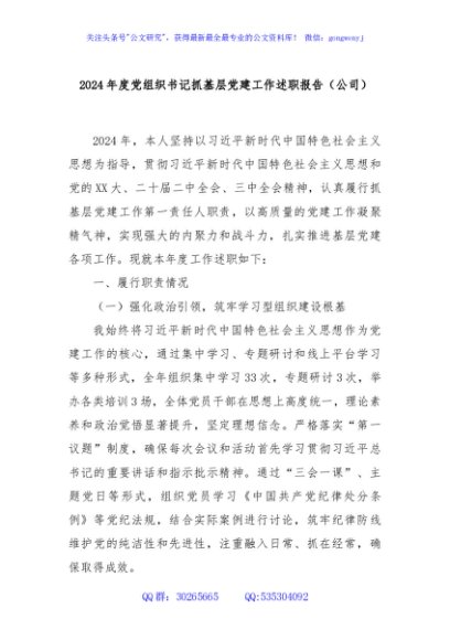 / 2024年度党组织书记抓基层党建工作述职报告(公司)