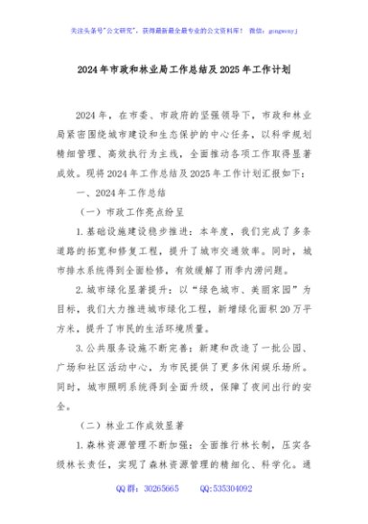 / 2024年市政和林业局工作总结及2025年工作计划