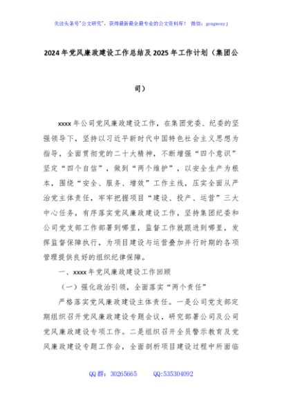 / 2024年党风廉政建设工作总结及2025年工作计划(集团公司)