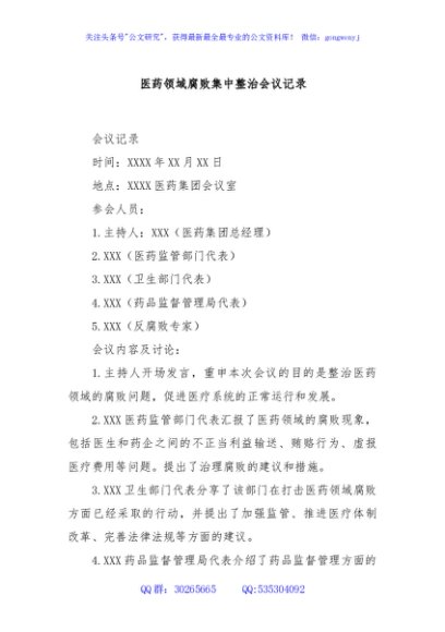 / 医药领域腐败集中整治会议记录