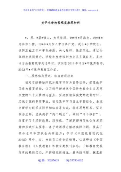 / 关于小学校长现实表现材料