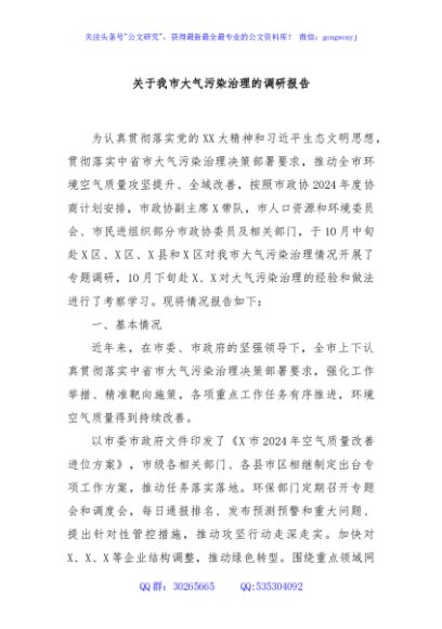/ 关于我市大气污染治理的调研报告