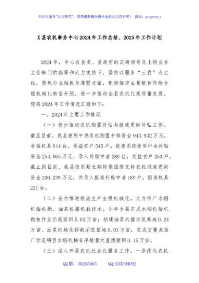 / X县农机事务中心2024年工作总结、2025年工作计划