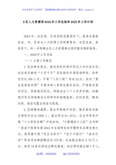 / X区人力资源局2024年工作总结和2025年工作计划
