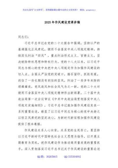 / 2025年作风建设党课讲稿