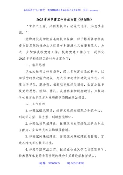 / 2025学校党建工作计划方案(详细版)