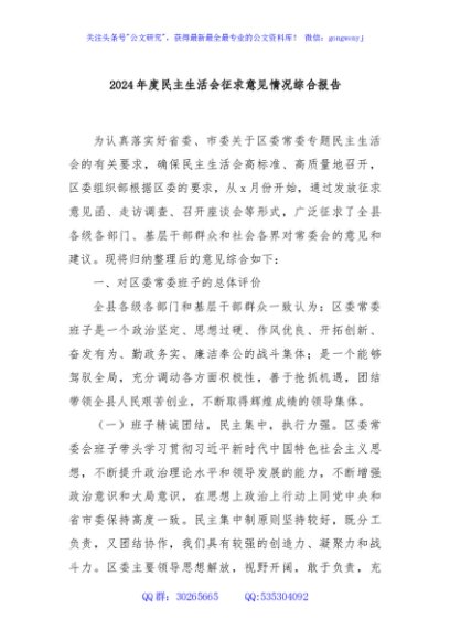 / 2024年度民主生活会征求意见情况综合报告