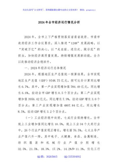 2024年全市经济运行情况分析