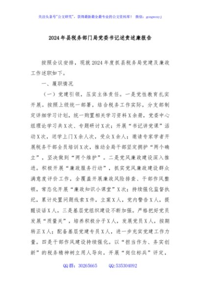 / 2024年县税务部门局党委书记述责述廉报告