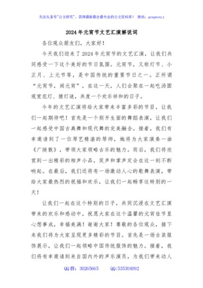 / 2024年元宵节文艺汇演解说词