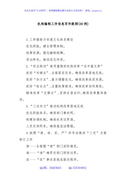 (30例)机构编制工作信息写作提纲