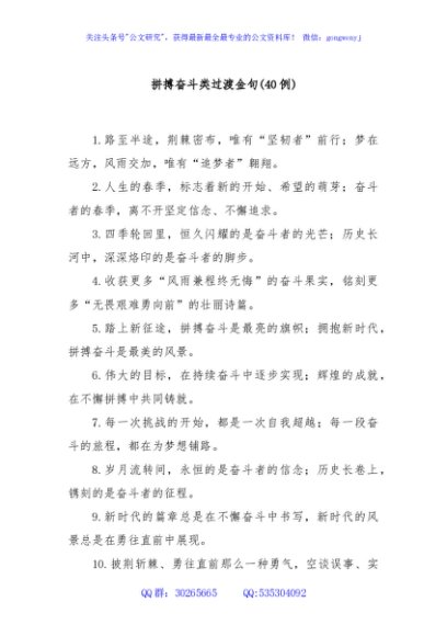 / (40例)拼搏奋斗类过渡金句