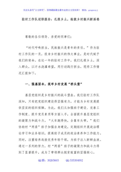 / 驻村工作队述职报告:扎根乡土,绘就乡村振兴新画卷