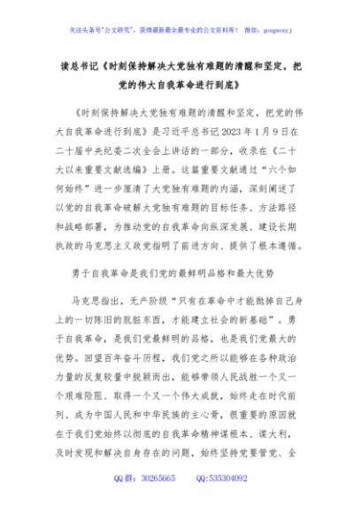 读总书记《时刻保持解决大党独有难题的清醒和坚定,把党的伟大自我革命进行到底》