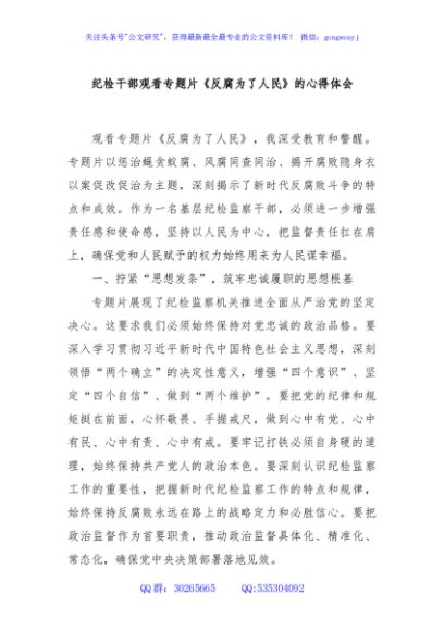 / 纪检干部观看专题片《反腐为了人民》的心得体会