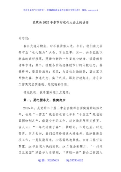 / 民政局2025年春节后收心大会上的讲话