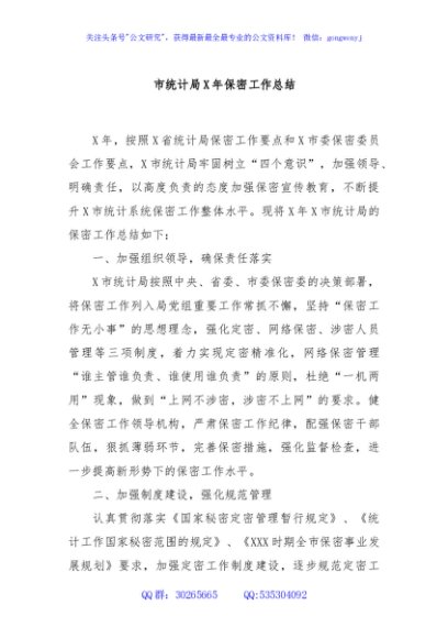 市统计局X年保密工作总结