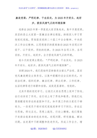 / 廉政党课:严明纪律、干在实处,为2025年开好头、起好步,提供风清气正的环境保障