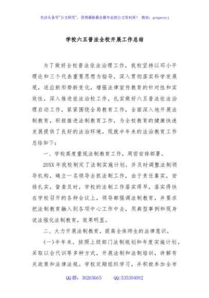 / 学校六五普法全校开展工作总结