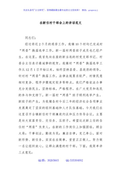 在新任村干部会上的讲话范文