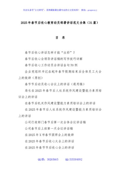 / (31篇)2025年春节后收心教育动员部署讲话范文合集