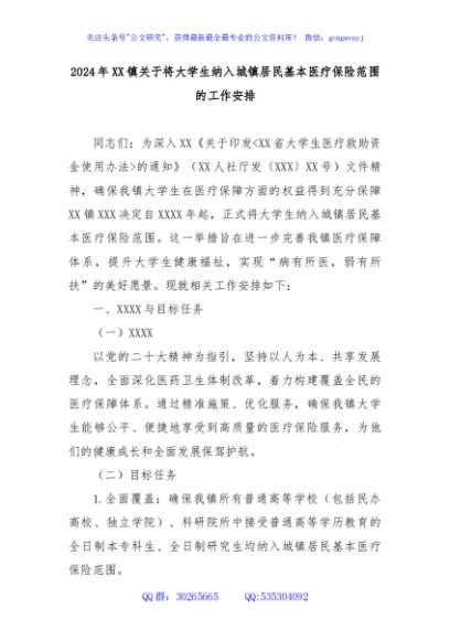/ 2024年XX镇关于将大学生纳入城镇居民基本医疗保险范围的工作安排