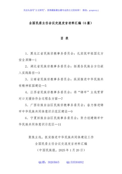 / (6篇)全国民委主任会议交流发言材料汇编