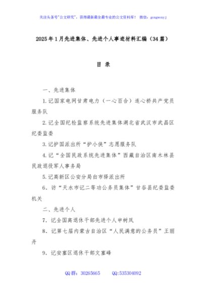/ (34篇)2025年1月先进集体、先进个人事迹材料汇编