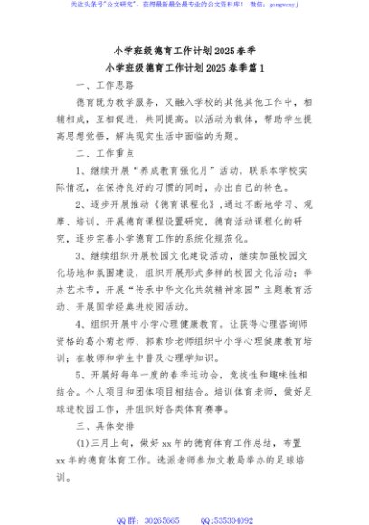 (10篇)小学班级德育工作计划2025春季