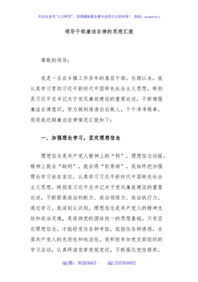 / 领导干部廉洁自律的思想汇报