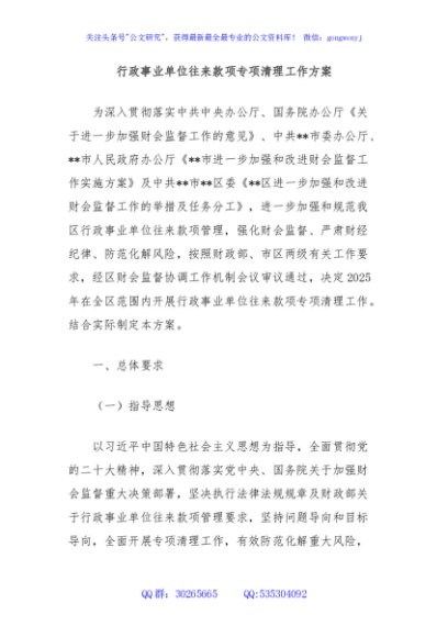 / 行政事业单位往来款项专项清理工作方案
