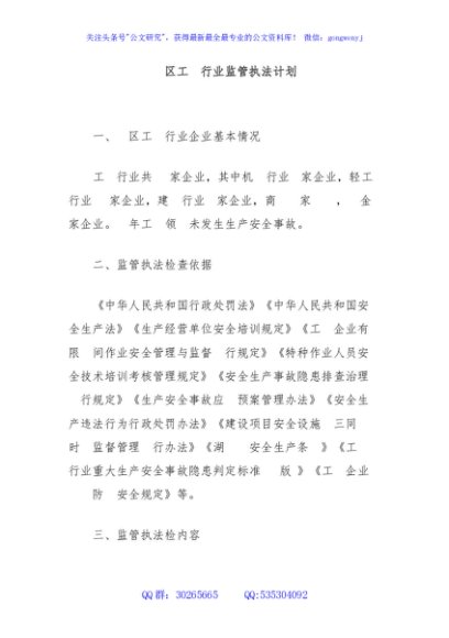 / 辖区工贸行业监管执法计划