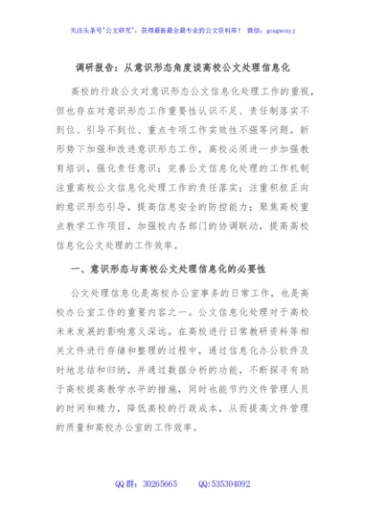/ 调研报告:从意识形态角度谈高校公文处理信息化