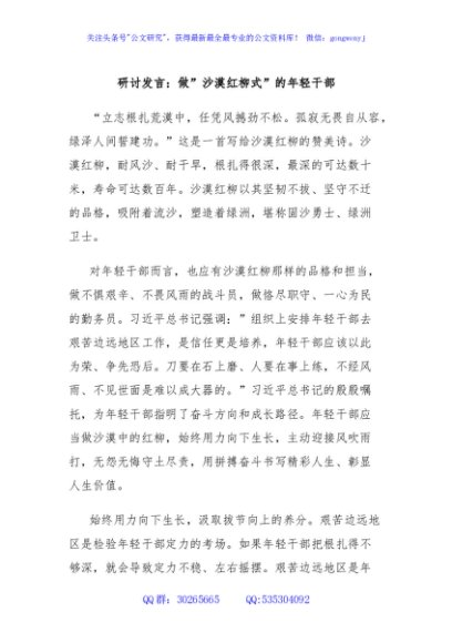 / 研讨发言:做”沙漠红柳式”的年轻干部